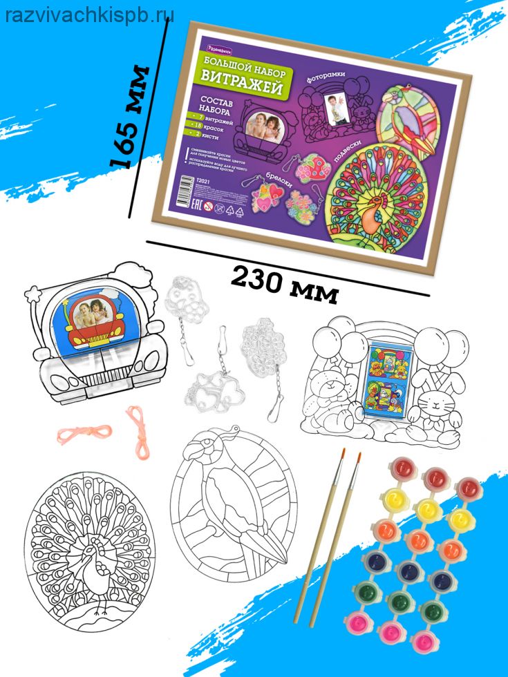 Большой набор витражей с красками прекрасно подходит для подарка.