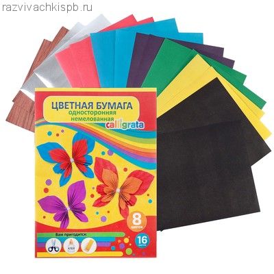 Бумага цветная А4, 16 листов, 8 цветов "Бабочки"