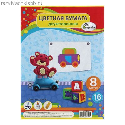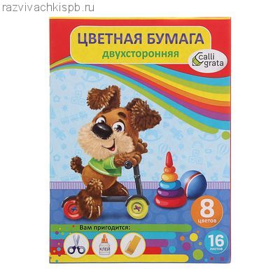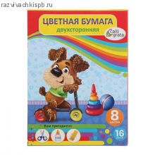 Бумага цветная двухсторонняя А4, 16 листов, 8 цветов "Собака"