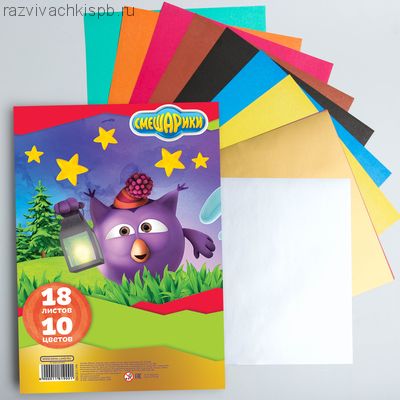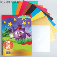 Бумага цветная в папке А4 "Смешарики", 18 листов, 10 цветов, волшебная (золото+серебро)