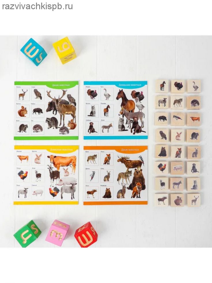 Деревянное лото "Домашние и дикие животные", настольная игра для детей, 24 фишки + 4 карточки. Это тематическое лото с деревянными фишками познакомит малышей с "Домашними и дикими животными", рекомендуется для детей от 3-х до 5 лет и рассчитано на 2 или 4 участников. Как и многие другие аналогичные игры с картинками, оно помогает развить у ребенка зрительную память и внимание.