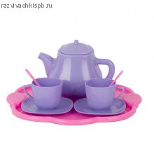 Игровой набор предназначен для сюжетно-ролевых игр, способствует развитию воображения.Набор изготовлен из высококачественных материалов. Изделие проверено на соответствие требованиям технических регламентов Таможенного Союза и имеет сертификацию ЕАС.Комплектация : поднос Цветочек, чайник с крышкой, чашка чайная 2шт., блюдце 2шт., ложка чайная 2шт..Размеры: поднос 26*24 см, блюдце 9,5*9,5 см, чашечка 5,5*5,7*4 см, чайник 9*9,5*6,5*15 см.
