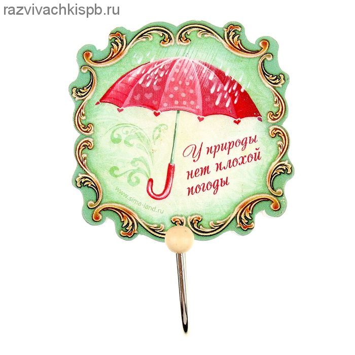 Крючок "У природы нет плохой погоды" — отличный помощник на кухне, в ванной или в любом другом помещении. На обратной стороне изделия находится маленькое "ушко" для гвоздика.