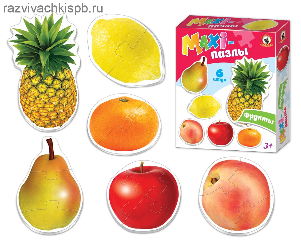 Набор Мaxi-пазлы "Фрукты" предлагает ребенку собрать 6 мозаик необычной формы. Каждый пазл изображает определенный фрукт и состоит из разного количества деталей. Все детали пазлов адаптированы специально для маленьких ручек, они крупные, удобные для захвата детской руки.
