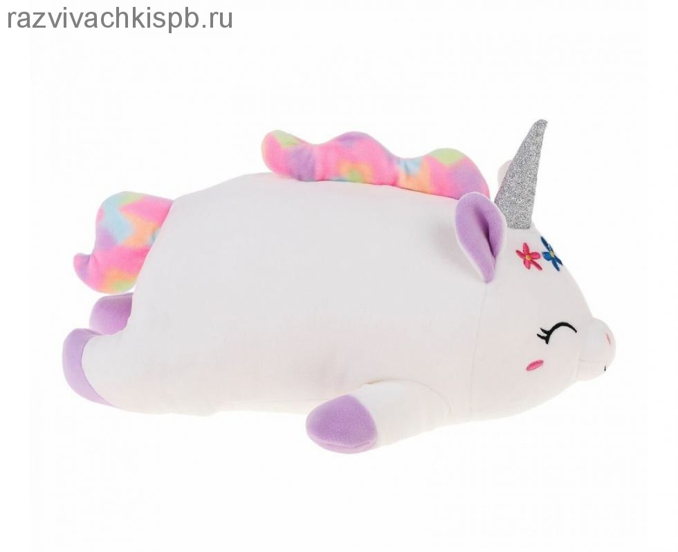 Игрушка не даст ребёнку заскучать, а когда он устанет, позволит с комфортом расслабиться. Форма тела единорога продумана специально таким образом, чтобы на нём было приятно лежать. Ну а гладить и обнимать эту игрушку — одно удовольствие!