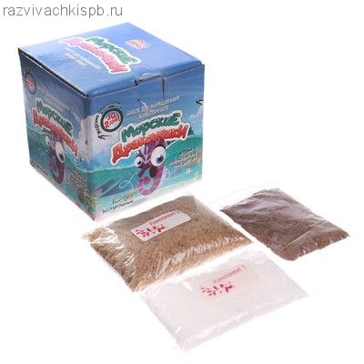 Самое главное действовать строго по инструкции: вовремя кормить живых питомцев и соблюдать температурный режим воды. Интересный эксперимент способствует развитию познавательной активности детей. Выращивая своих новых морских питомцев, вы станете настоящим исследователем! Особенности и комплектация: - морские обитатели за 2 дня - выращиваем живых рачков - быстрое вылупление - песок кварцевый - 150 г - яйца Artemia Salina - 10 г - соль морская - 50 г - использовать набор можно только под присмотром взрослых - инструкция