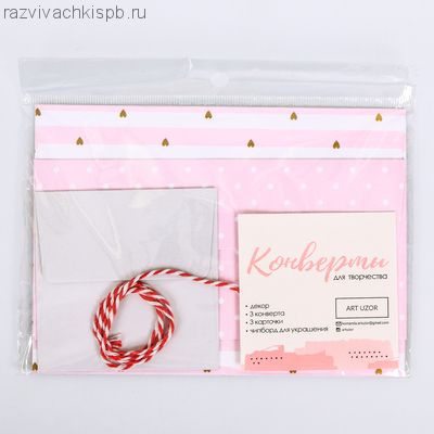 В набор входит 3 конверта, 3 карточки, вырубка из картона.