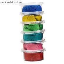 Песочный пластилин - 6 цветов(красный, желтый, синий, изумрудный, розовый, зеленый) по 100 ± 5г.