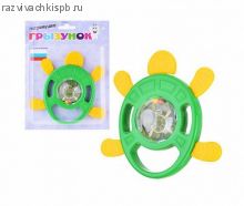Погремушка издаёт характерные звуки при встряхивании. Вещица имеет форму, удобную для захвата маленькими ладошками. Ребёнка заинтересуют яркие цвета и причудливые очертания игрушки. В период прорезывания зубов кроха с удовольствием будет покусывать грызунок, облегчая дискомфорт в дёснах.