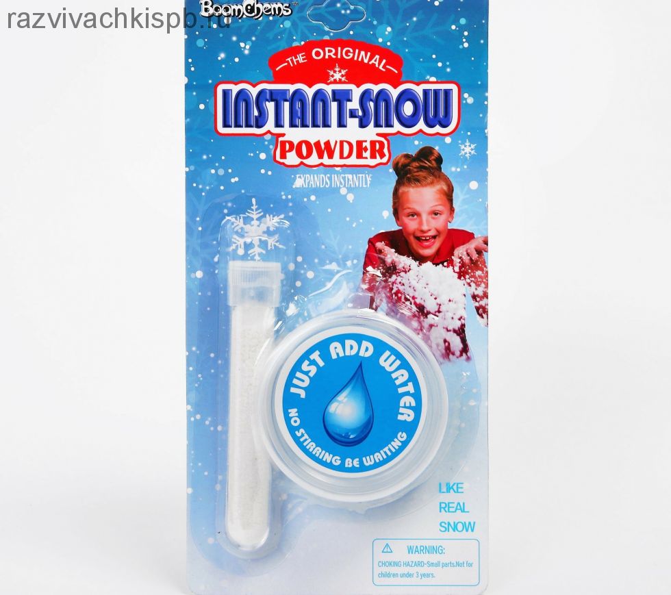 Набор для опытов "Волшебный" Искусственный снег познакомит вашего ребенка с искусственным снегом. Детям очень нравится играть с этим "снегом". Ведь с его помощью можно устроить игрушечный снегопад, устроить "снежные" заносы игрушечным автомобилям и даже воссоздать зимний сказочный лес.