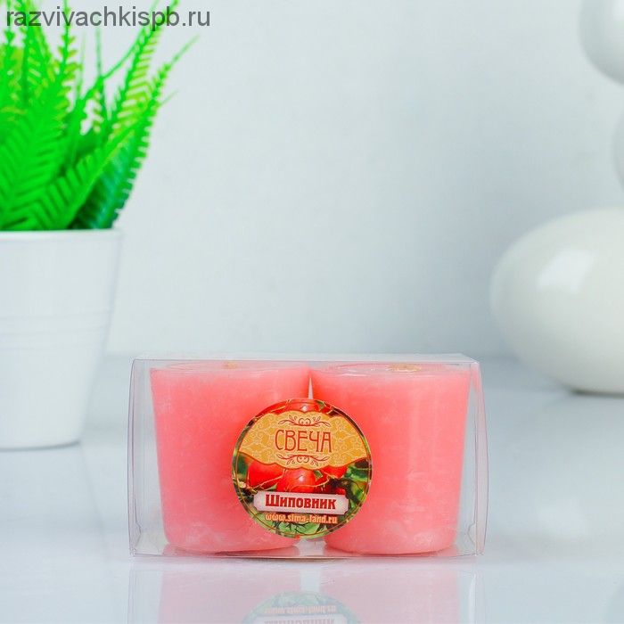 Свечи восковые (набор 2 шт) "Столбик", аромат шиповник