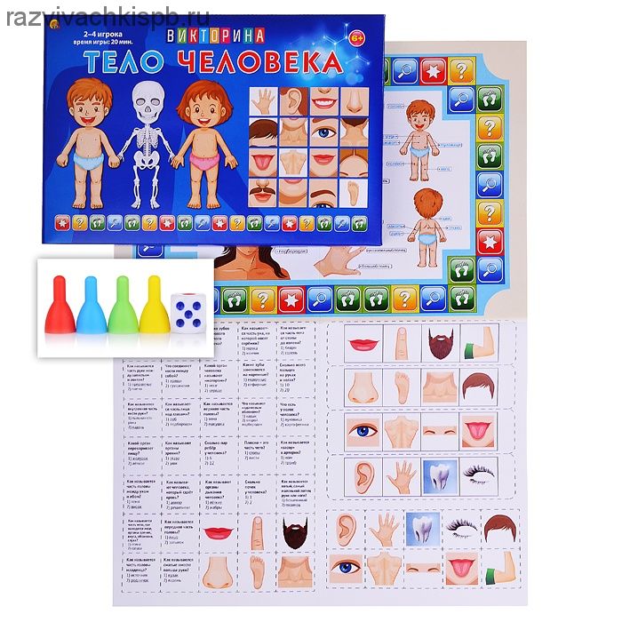 Игра состоит из заданий, которые детям придется выполнять, чтобы одержать победу. Таким образом знания о человеческом теле легко и непринужденно войдут в жизнь вашего малыша. Игра предназначена для 2-4 игроков в возрасте от 6 лет. В комплекте: игровое поле размером 42x57 см, карточки, 4 фишки, 1 кубик, инструкция.
